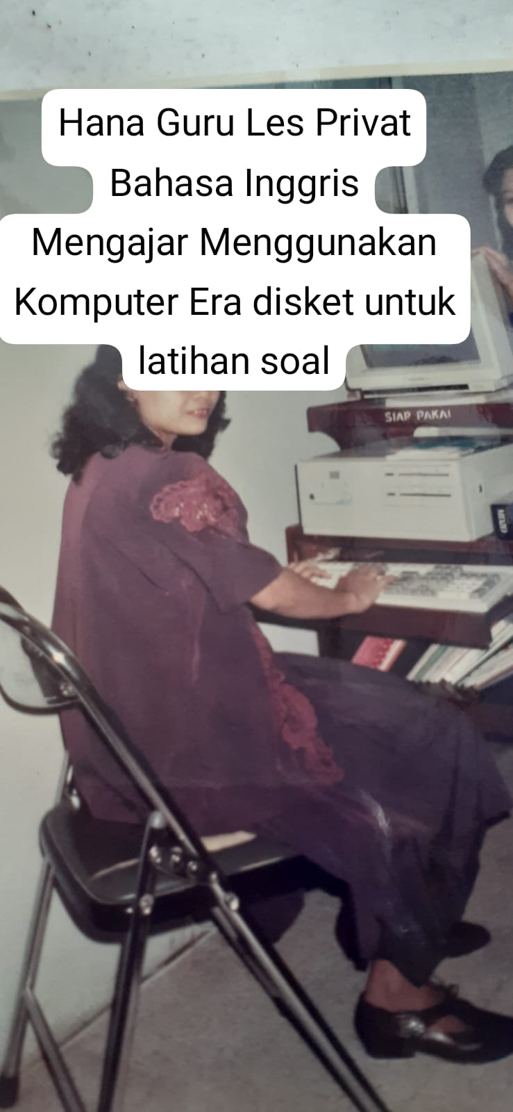 Guru Les Privat Bahasa Inggris Online berpengalaman panjang lebih dari 30 tahun,ini adalah photo mengajar bahasa inggris sejak era computer disket untuk mengimpan data, saat ini beralih mengajar bahasa inggris online via google meet, dan live tiktok edukasi bahasa inggris untuk yang ingin belajar. Lihat photo dibawah ini situasi sedang mangajar bahasa inggris via google meet dan live tiktok